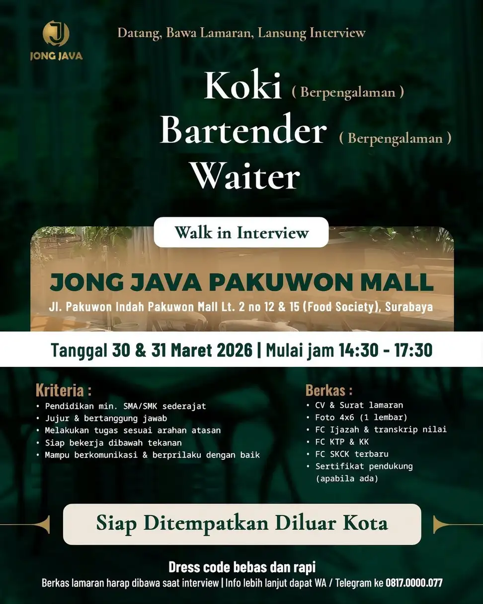 Lowongan kerja aman & terpercaya, update setiap hari.Setiap loker yang tampil telah terverifikasi & bebas penipuan.